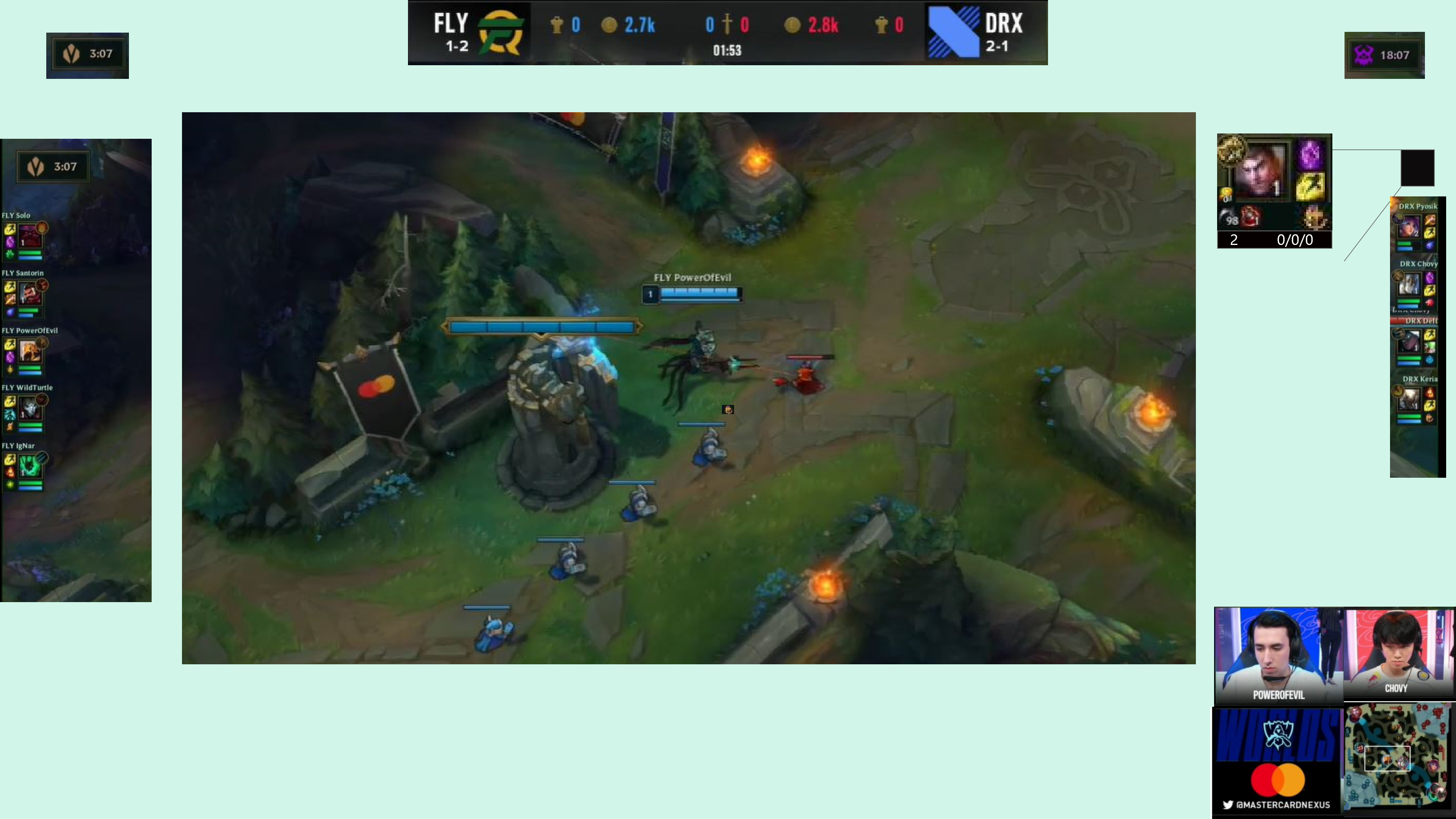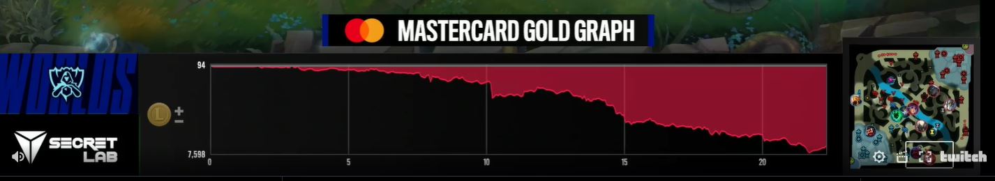 An interesting addition to this year's Worlds event was in-game product placement. Subtle banners were placed all over the rift, showcasing brands like Spotify and Mastercard to viewers, yet out of the way of gameplay. These types of integrated promotions are a great way to gain impressions, especially when they make sense with the game. A great example of this was the gold graph presented by Mastercard: